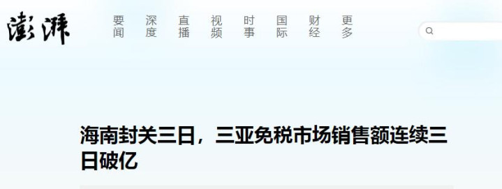 海南封关三日,三亚免税市场销售额连续三日破亿——澎湃新闻
