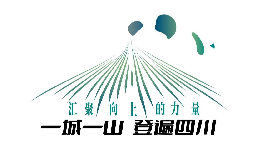 本次发布的“登超”LOGO以渐变青绿色线条从底部向顶端汇聚,模拟登山路径与向上攀登的动态感,象征每一位户外爱好者的脚步、21个市州的力量,共同向四川的群山汇集,形成向上生长的势能。上方错落的蓝绿色块,既抽象提炼了四川山峰轮廓与川西高原地貌,呼应“山水林田湖草”共生的生态底色,又在色块轮廓中巧妙融合熊猫侧面背影形态,将国宝符号与山水意象自然结合。青蓝至翠绿的渐变色调,贴合自然意象,与“安全登山、生态户外”的赛事理念契合。