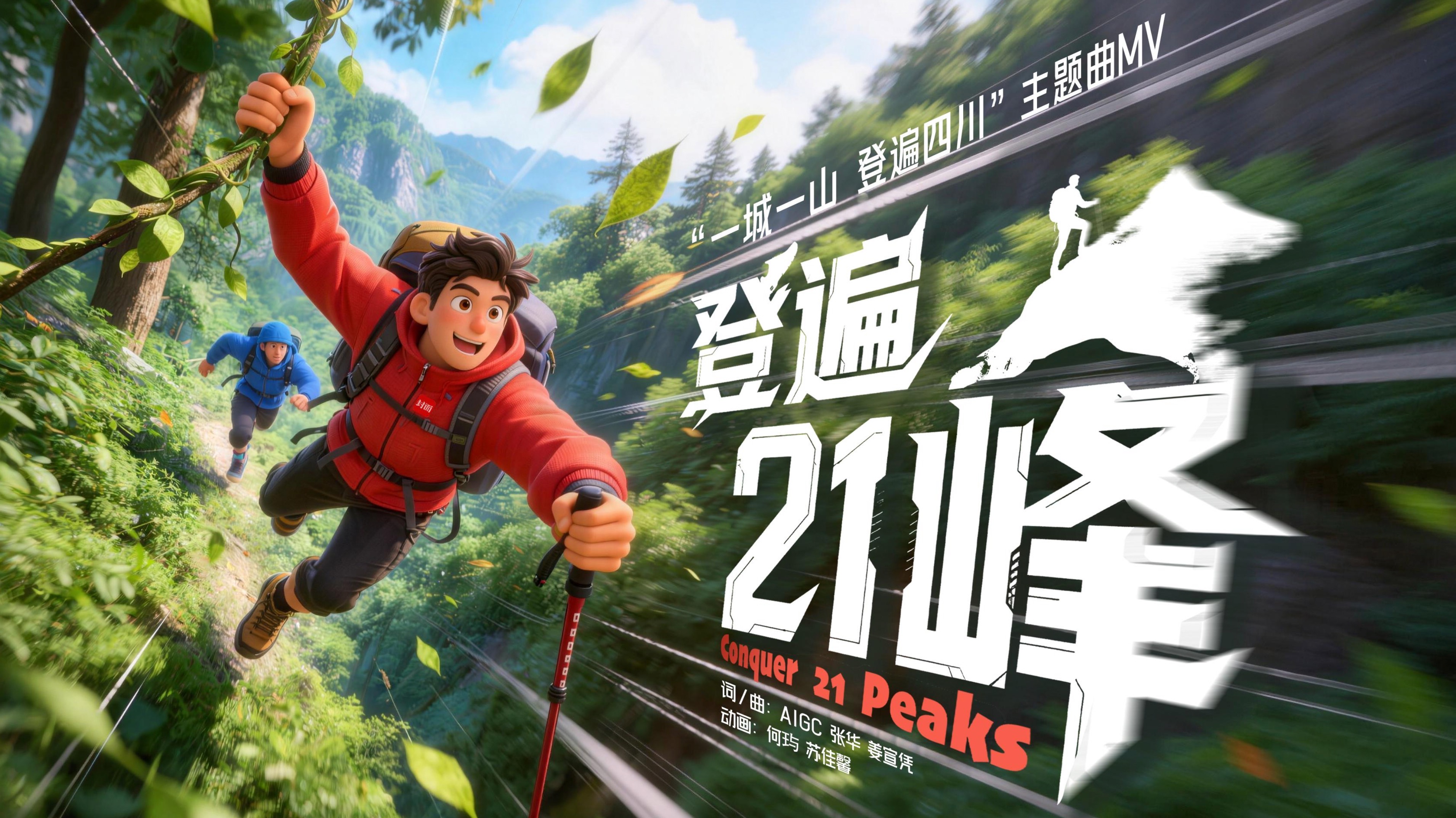 除视觉体系外,赛事主题曲《登遍21峰》同步发布。歌词融入全民健身理念,始终秉持敬畏自然、安全登山的初心,字字镌刻着攀登者不畏险阻、勇毅前行的赤诚与坚守,也声声激励着万千大众以脚步丈量巴蜀山河,在向上攀登中尽览天府山水的雄奇秀美,传递出全民健身的澎湃活力与永不止步的向上精神。