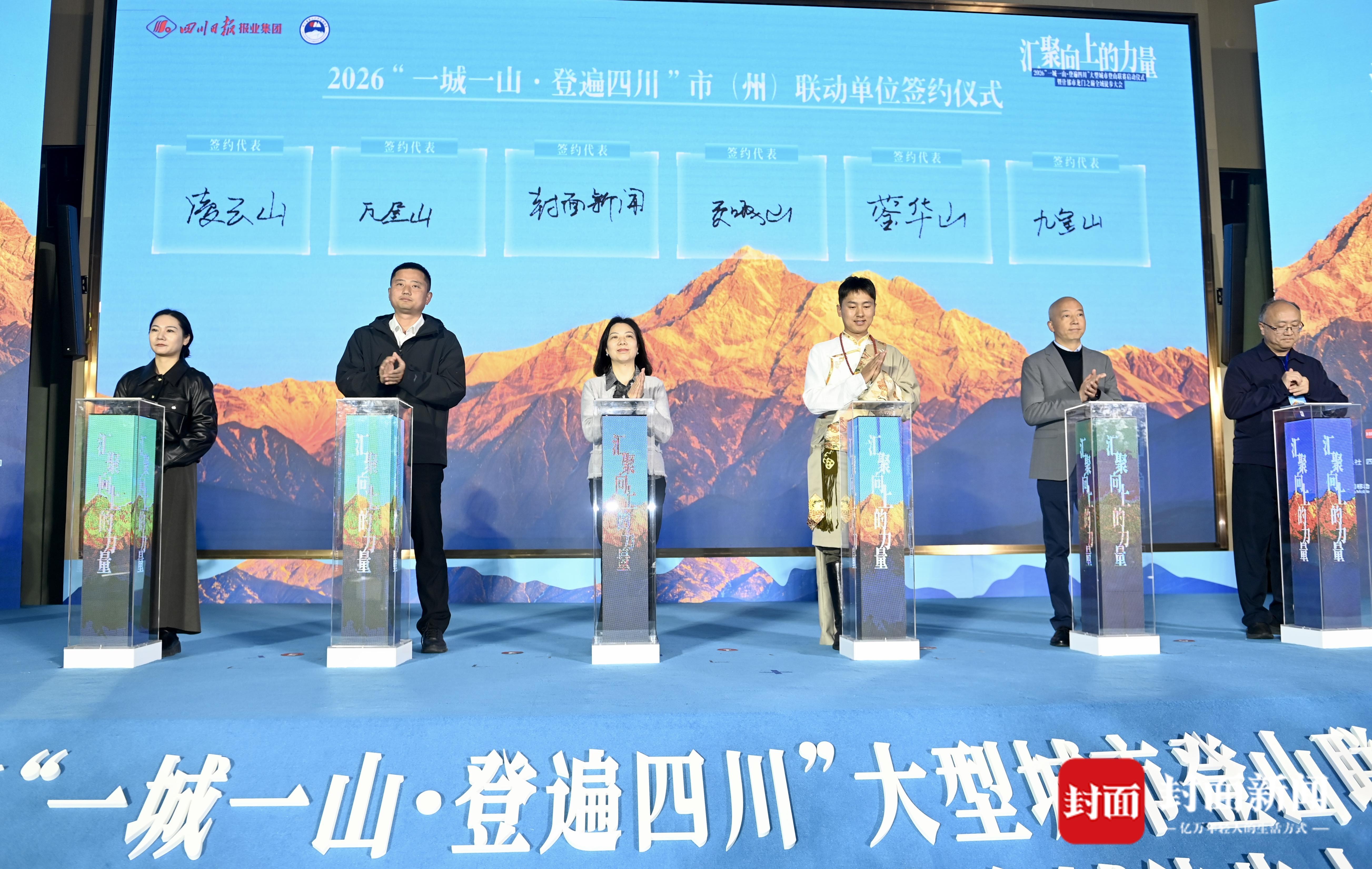 在市(州)联动单位签约仪式上,甘孜、德阳、眉山、达州、绵阳、广元、乐山、宜宾、资阳、自贡等多地代表依次登台签约,全川21市州的地标山峰就此正式联动。一幅连缀巴山蜀水、串联全域文旅的攀登画卷徐徐展开,让“一城一山”的品牌理念落地生根,推动各地山水资源、文化资源实现互联互通。