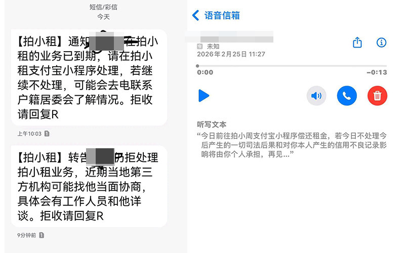 多位求职者收到平台的催收短信及电话